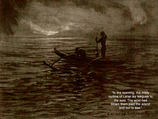 lava flowed, hissing, into the sea. Desperately their paddles dipped in